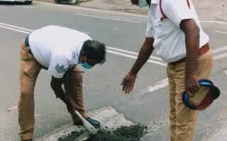 சாலைகளை சீரமைக்க களமிறங்கிய திருச்சி மாநகர காவல்துறை