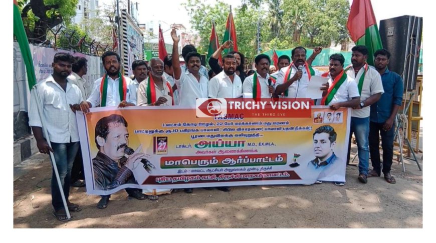 செந்தில் பாலாஜியை அமைச்சர் பதவியிலிருந்து தகுதி நீக்கம் செய்து, பூரண மதுவிலக்கை தமிழகத்தில் அமல்படுத்த வலியுறுத்தி புதிய தமிழகம் கட்சி சார்பில் திருச்சி மாவட்ட ஆட்சியர் அலுவலகம் கண்டன ஆர்ப்பாட்டம் நடைபெற்றது.