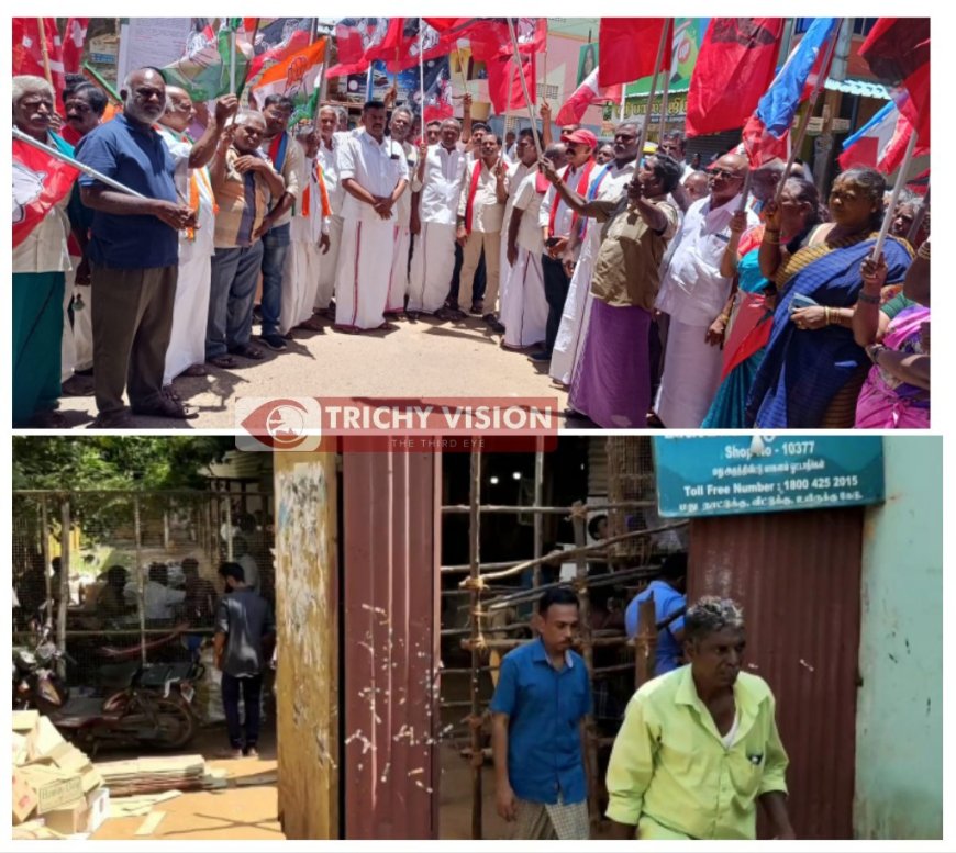 இக்கடையை அப்பகுதியில் இருந்து அகற்ற வேண்டும் என்று கக்கன் காலனி பொதுமக்கள் சார்பில் விடுதலை சிறுத்தைகள் கட்சியினர் திருவெறும்பூர் தாசில்தார் செய பிரகாசத்திடம் புகார் கடந்த மாதம் மனு கொடுத்தனர். இதனை அடுத்து எந்த நடவடிக்கையும் தாசில்தார் எடுக்காததால் அடுத்து கலெக்டர் மற்றும் தொகுதி எம்எல்ஏவும், பள்ளிக்கல்வித்துறை அமைச்சருமான அன்பில் மகேஷ் பொய்யாமொழியிடம் மனு கொடுத்தனர்.
