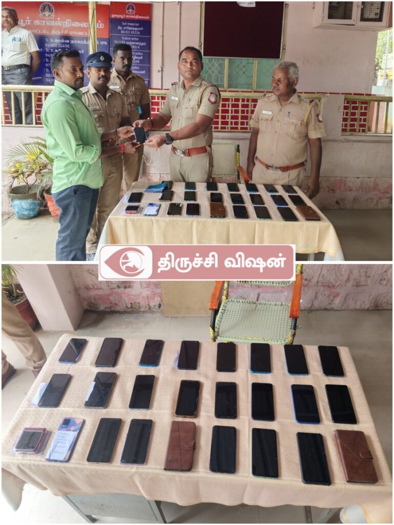 தனிப்படை அமைத்து சைபர் கிரைம் காவலர் உதவியுடன் விசாரணை செய்ததில் பல்வேறு பகுதிகளில் காணாமல் போன செல்போன்கள் இருப்பது தெரியவந்தது. அதனை தொடர்ந்து முதல் கட்டமாக 25 செல்போன்களை மீட்டனர்,இன்று துறையூர் காவல் ஆய்வாளர் முத்தையா செல்போன் தவறவிட்ட