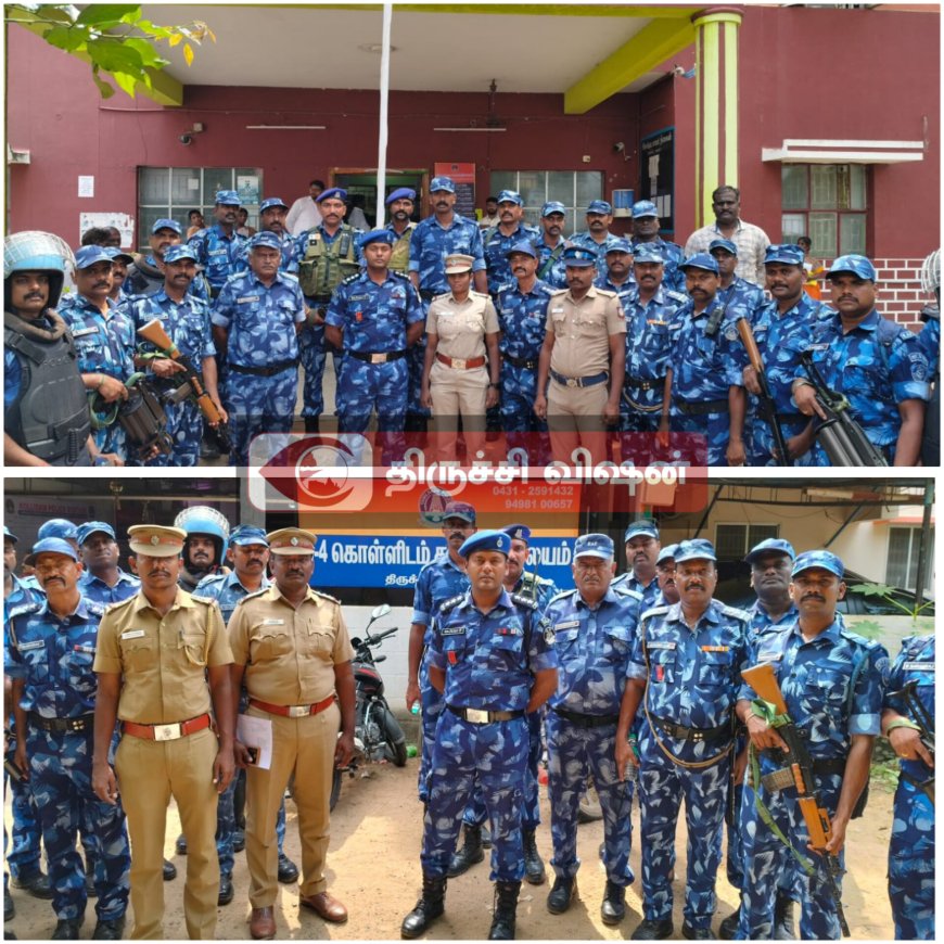 திருச்சி மாவட்ட காவல் எல்லைக்கு உட்பட்ட பதற்றமான பகுதிகளில் மத்திய ரிசர்வ் காவல் படையினர் ஆய்வு