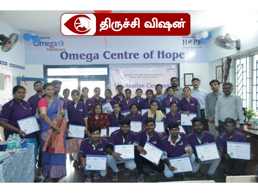 ஒமேகா ஹெல்த்கேர் மேனேஜ்மென்ட் பிரைவேட் லிமிடெட் சார்பில் திருச்சி ஹோப் பவுன்டேசண் கணினி மற்றும் திறன் பயிற்சி பெற்ற மாணவர்களுக்கு சான்றிதழ் வழங்கும் விழா (01.08.2023) நடைபெற்றது. பத்தாயிரம் கிராமப்புற மற்றும் பின் தங்கிய இளைஞர்களின் வாழ்க்கையை மாற்றுவதை நோக்கமாக கொண்டு பயிற்சிகள் வழங்கப்பட்டு வேலைவாய்ப்பு ஏற்படுத்தி தரப்படுகிறது.