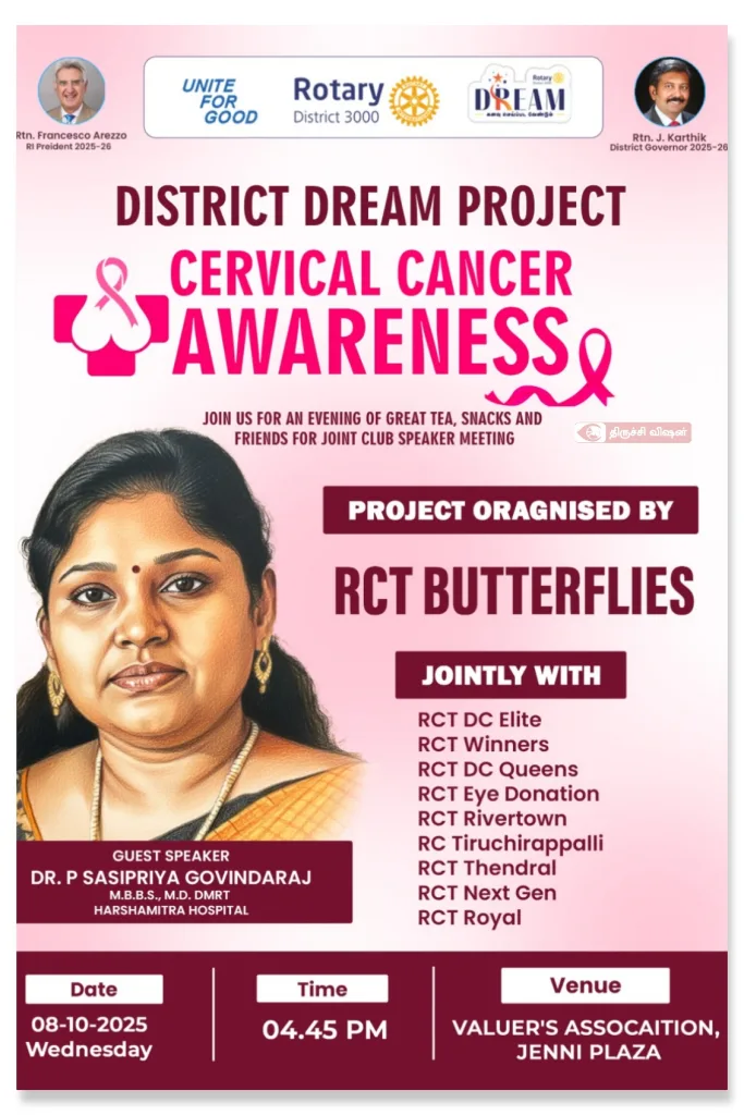 நேற்று (08.10.2025) நடைபெற்ற ரோட்டரி 2025-2026 மாவட்ட ட்ரீம் திட்டம் – கர்ப்பப்பை வாய்ப் புற்றுநோய் விழிப்புணர்வு நிகழ்ச்சி மிக சிறப்பாக நடைபெற்றது.