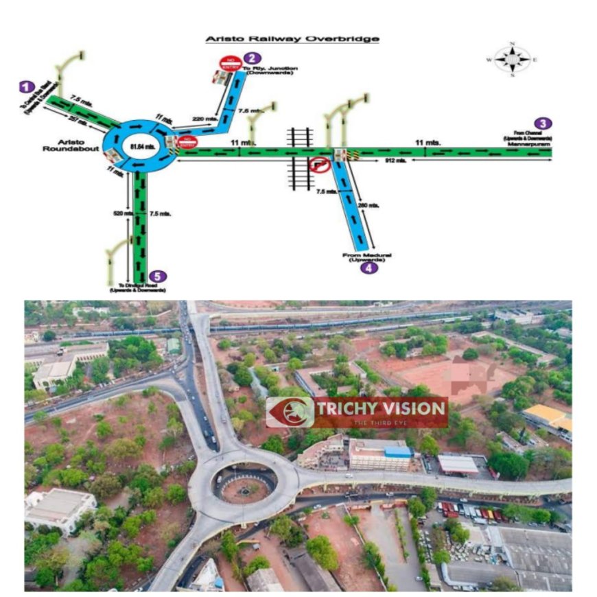 அரிஸ்டோ உயர்மட்ட மேம்பாலத்தை இருவழிப்பாதையாக மாற்றும் பொருட்டு பொதுமக்கள் போக்குவரத்து நெரிசலின்றி எளிதாக பயணிக்க வேண்டி திருச்சி மாநகர காவல் ஆணையர் மற்றும் போக்குவரத்து காவல் அதிகாரிகள் கள ஆய்வு செய்தும், கீழ்கண்டவாறு அரிஸ்டோ மேம்பாலத்தில் பயணம் செய்வதற்கு, (05.07.2023)-ந் தேதி முதல் வாகன ஓட்டிகள் இரு வழி பாதையாக வாகனங்கள் சென்று வர அனுமதிக்கப்படுகிறது.