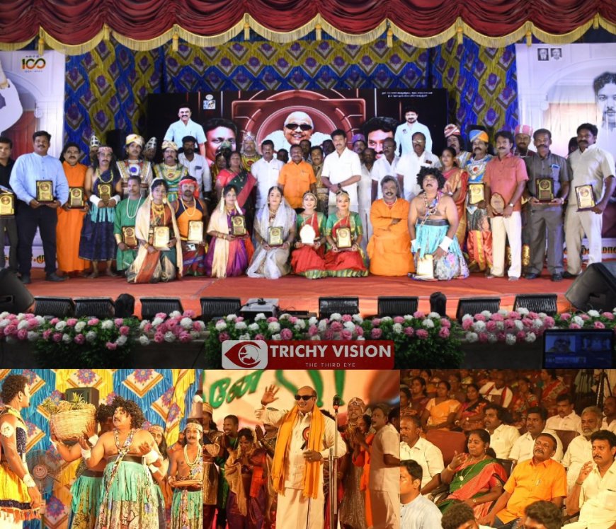 கலைஞர் நூற்றாண்டு விழாவை முன்னிட்டு திருச்சி தெற்கு மாவட்ட மாநகர கழகங்களின் சார்பாக திருச்சி தேவர் மஹாலில் சேரன் செங்குட்டுவன் நாடகம் அரங்கேற்றப்பட்டது.