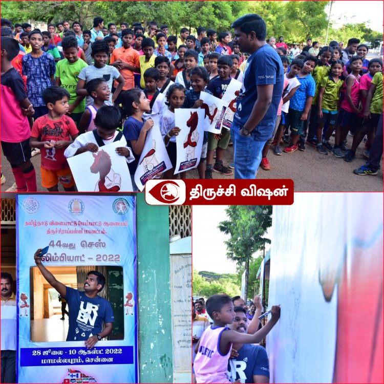 திருச்சிராப்பள்ளி மாவட்ட விளையாட்டரங்கில், செஸ் விளையாட்டு விழிப்புணர்வுப் பலகையில் மாவட்ட ஆட்சித் தலைவர் மா.பிரதீப் குமார், கையெழுத்திட்டு, இளம் விளையாட்டு வீரர்கள் உள்ளிட்ட பலரும் ஆர்வத்துடன் கையெழுத்திடும் விழிப்புணர்வு நிகழ்ச்சியினைத் தொடங்கி வைத்தார்.