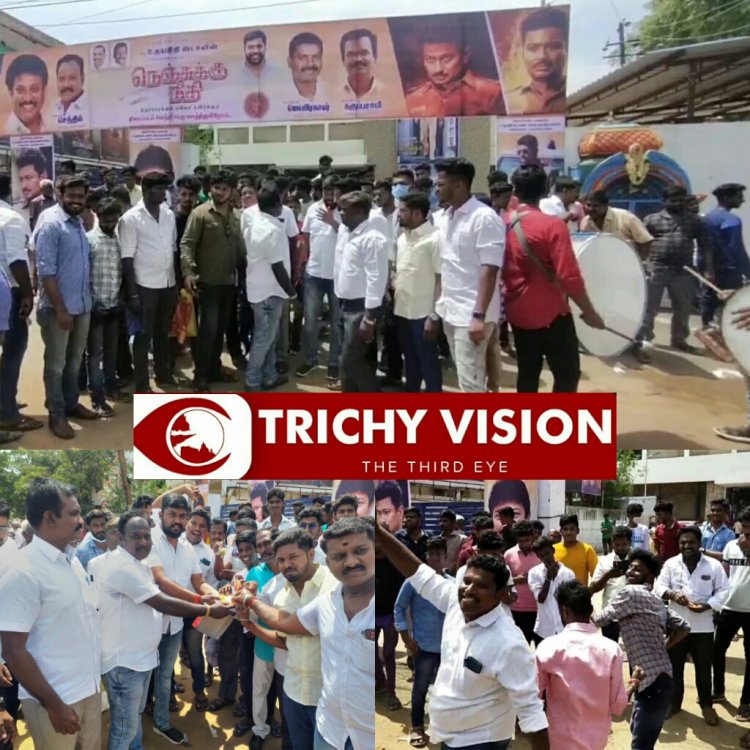 திருச்சி மாவட்ட தலைமை உதயநிதி ஸ்டாலின் ரசிகர் நற்பணி மன்ற மாவட்ட தலைவர் செந்தில் தலைமையில், வெடி வெடித்து, இனிப்புகள் வழங்கியும் ரசிகர்கள் உற்சாகத்துடன் நடனமாடி கொண்டாடி மகிழ்ந்தனர்.