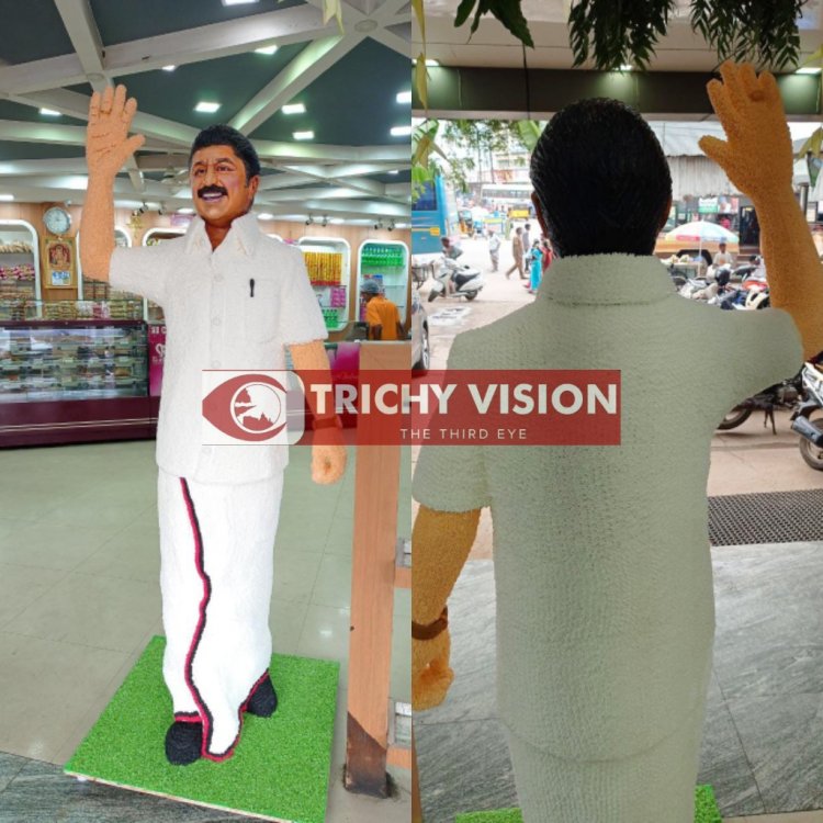 இதன் ஒரு பகுதியாக தமிழக முதலமைச்சர் மு.க ஸ்டாலின் சிறப்பான ஆட்சி செய்வதாகவும், அவரை வாழ்த்தும் விதமாகவும் திருச்சி சத்திரப் பேருந்து நிலையம் அருகே உள்ள ஸ்ரீ ராஜேஸ்வரி பேக்கரி மற்றும் ஸ்வீட்ஸ் சார்பில் முதலமைச்சர் மு.க.ஸ்டாலின் உருவத்தில் சுமார் 92 கிலோ எடை கொண்ட பிரம்மாண்ட கேக் தயாரிக்கப்பட்டுள்ளது.