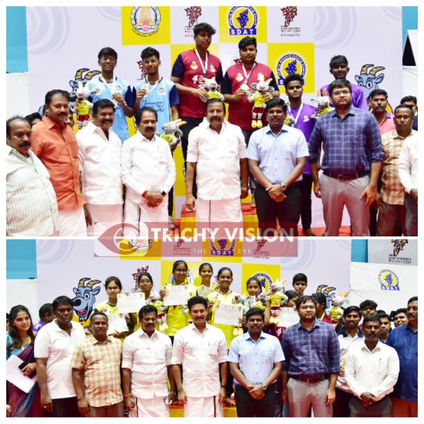(2024-25) ஆம் ஆண்டிற்கு மாநில அளவிலான முதலமைச்சர் கோப்பைக்கான கைப்பந்து மற்றும் கேரம் விளையாட்டுப் போட்டிகள் (06.10.2024) முதல் (23.10.2024) வரை திருச்சிராப்பள்ளி அண்ணா விளையாட்டரங்கில் நடைபெற்று வருகிறது. இப்போட்டிகளுக்கான தொடக்க விழாவை மாண்புமிகு நகராட்சி நிருவாகத்துறை அமைச்சர் கே.என்.நேரு (06.10.2024) அன்று தொடங்கி வைத்தார்.