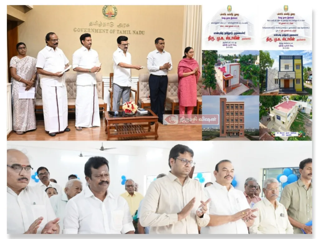 அதனடிப்படையில் திருச்சிராப்பள்ளி மாவட்டத்தில் பொது நூலக இயக்ககம் சார்பில் புதிதாக கட்டப்பட்ட திருச்சி கிழக்கு சட்டமன்றத் தொகுதிக்கு உட்பட்ட 63-வது வார்டு அய்யப்ப நகர் கிளைநூலகம் இணைப்புக் கட்டிடம் (முதல் தளம்), துறையூர் சட்டமன்றத் தொகுதிக்கு உட்பட்ட துறையூரில் முழுநேர கிளை நூலக இணைப்புக் கட்டிடம் மற்றும் முசிறி சட்டமன்ற தொகுதிக்குட்பட்ட தொட்டியம் – கொப்பம்பட்டி ஊர்ப்புற நூலக கட்டிடம் என 3 கட்டடங்கள் ரூ.22 இலட்சம் மதிப்பீட்டில் கட்டடத்திற்கும் மற்றும் தளவாடங்கள், நூல்கள் ஆகியவற்றின் மதிப்பு ரூ.4 இலட்சம் என மொத்தம் தலா ரூ.26 இலட்சம் மதிப்பீட்டில் 3 நூலக கட்டடங்கள் தமிழ்நாடு முதலமைச்சர் மு.க.ஸ்டாலின் அவர்கள் இன்று (26.09.2025) சென்னை தலைமைச் செயலகத்திலிருந்து காணொளி காட்சி வாயிலாக திறந்து வைத்தார்.