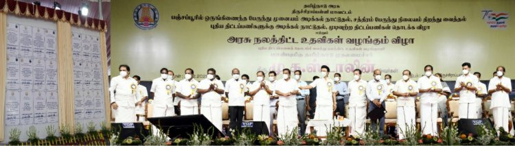 திருச்சி– திண்டுக்கல் சாலையில் உள்ள கேர் கல்லுாரியில், இன்று (30.12.2021) மாலை நடந்த விழாவில், தமிழக முதல்வர் ஸ்டாலின் பங்கேற்று, 1,084.80 கோடி ரூபாய் மதிப்பிலான பல்வேறு திட்டப் பணிகளுக்கு அடிக்கல் நாட்டியும், நிறைவுற்ற பணிகளை பயன்பாட்டுக்கும் வழங்கினார்.