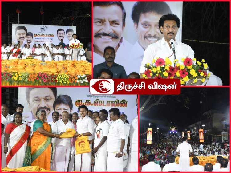 அமைச்சர்கள் அன்பில் மகேஸ் பொய்யாமொழி பங்கேற்பு திருச்சி தெற்கு மாவட்டம், கிழக்கு மாநகரம், கலைஞர் நகர் பகுதி .சார்பில் தமிழ்நாடு முதலமைச்சர் மு.க.ஸ்டாலின் பிறந்த நாளை முன்னிட்டு திருச்சி