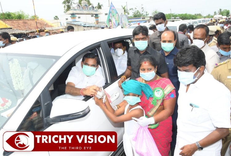 தமிழக முதலமைச்சர் எடப்பாடி பழனிச்சாமி புதுக்கோட்டையில் நடைபெறும் அரசு விழாவில் கலந்து கொள்வதற்காக இன்று புறப்பட்டார். திருச்சி வந்த அவருக்கு சுற்றுலா துறை அமைச்சர் வெல்லமண்டி நடராஜன், பிற்படுத்தப்பட்டோர் நலத்துறை அமைச்சர் வளர்மதி , மாவட்ட ஆட்சியர் சிவராசு ஆகியோர் பூங்கொத்து கொடுத்து வரவேற்று தெரிவித்தனர். பின்பு திருச்சி வழியாக விராலிமலையில் உள்ள ஐடிசி நிறுவனத்தின் ஆசிர்வாத் ஆட்டா வின் தொழிற்சாலையில் சுமார் 100 கோடி ரூபாயில் திறக்கப்பட்டது.