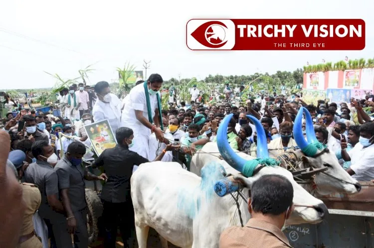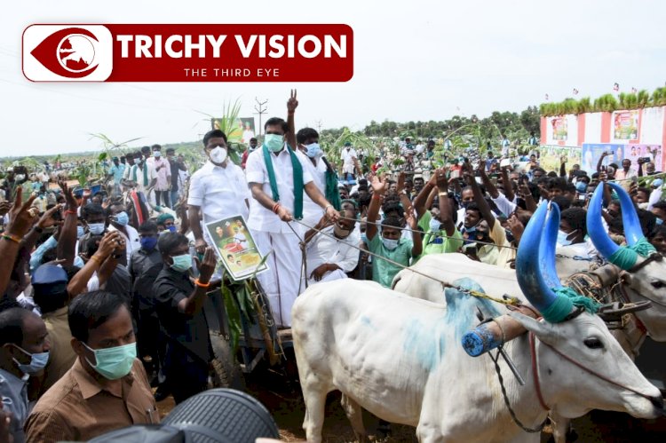 பின்பு விராலிமலையில் இருந்து இலுப்பூர் வழியாக புதுக்கோட்டைக்கு செல்லும்போது இலுப்பூரில் ஜல்லிக்கட்டு காளைகள் பராமரிப்பதை பார்வையிட்டு சென்றார். பின்பு கவிநாடு கன்மாயை பார்வையிட்ட முதல்வர் அங்கு ஏர் பூட்டிய மாட்டு வண்டியில் திடீரென்று ஏறி நின்று பொதுமக்களுக்கு வணக்கம் தெரிவித்தார்.