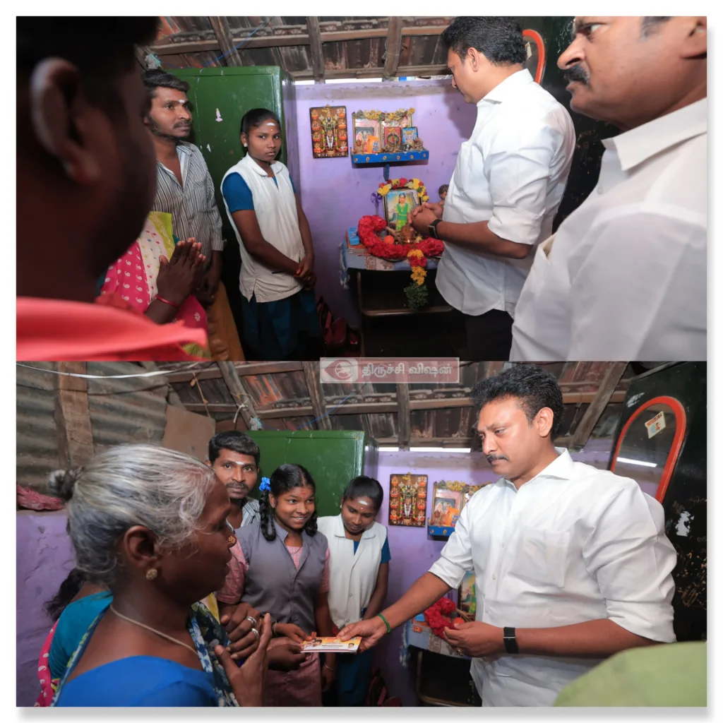 திருச்சி கிழக்கு சட்டமன்றத் தொகுதிக்குட்பட்ட மலைக்கோட்டை பகுதி 17 வது வார்டு சத்தியமூர்த்தி நகரில் குடிசை மாற்று வாரிய பகுதியில் கடந்த (06.09.2025) அன்று பெய்த கனமழையின் காரணமாக சுவர் இடிந்து விழுந்ததில் இடிபாடுகளில் சிக்கி
