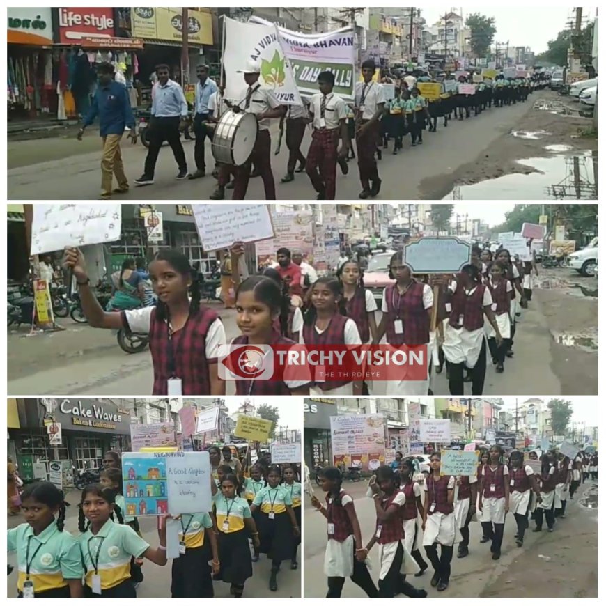 நவம்பர் 14 குழந்தைகள் தினத்தை முன்னிட்டு திருச்சி மாவட்டம் துறையூரில் இன்று பள்ளி மாணவ மாணவிகள் கலந்து கொண்ட விழிப்புணர்வு பேரணி நடைபெற்றது. துறையூர் முசிறி பிரிவு சாலையில் துவங்கிய இந்த பேரணியானது பேருந்து நிலையம் திருச்சி சாலை பாலக்கரை ஆத்தூர் ரோடு வழியாக பள்ளி வளாகம் வரை நடைபெற்றது இந்த பேரணியில் சுமார் 500க்கும் மேற்பட்ட பள்ளி குழந்தைகள் கலந்து கொண்டனர்.