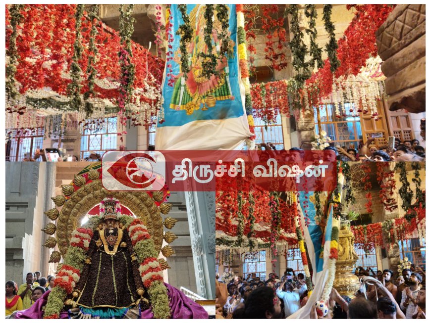 சமயபுரம் மாரியம்மன் கோயிலில் சித்திரை தேர் திருவிழா இன்று காலை கொடியேற்றத்துடன் துவங்கியது. பிரசித்தி பெற்ற திருச்சி சமயபுரம் மாரியம்மன் கோவில் சித்திரை திரு தேரோட்டத்தை முன்னிட்டு கோவில் கொடி மரத்தில் சிவாச்சாரியார்கள் வேத மந்திரம் முழங்க கொடியேற்றம் வெகு விமர்சையாக நடைபெற்றது இதில் திரளான பக்தர்கள் கலந்து கொண்டு சாமி தரிசனம் செய்தனர்.