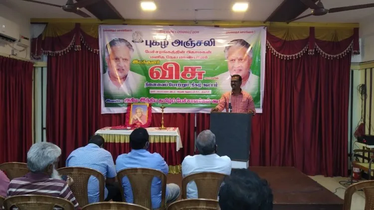 இந்நிகழ்ச்சியை அகில இந்திய தமிழ்ப் பேச்சாளர்கள் கூட்டமைப்பு ஒருங்கிணைத்து நடத்தியது. அமெரிக்காவில் வசிக்கும் விசுவின் குடும்பத்தார் மனைவி மற்றும் மகள்கள் காணொளி வழியாக நிகழ்ச்சியை கண்டுகளித்தனர். இந்நிகழ்ச்சி குறித்து பேசிய அகில இந்திய தமிழ் பேச்சாளர்கள் கூட்டமைப்பின் செயலாளர் சிங்காரவேலு அவர்கள் , விசு நடிகர் இயக்குனரையும் தாண்டி அவர் ஆகச் சிறந்த பேச்சாளர் .