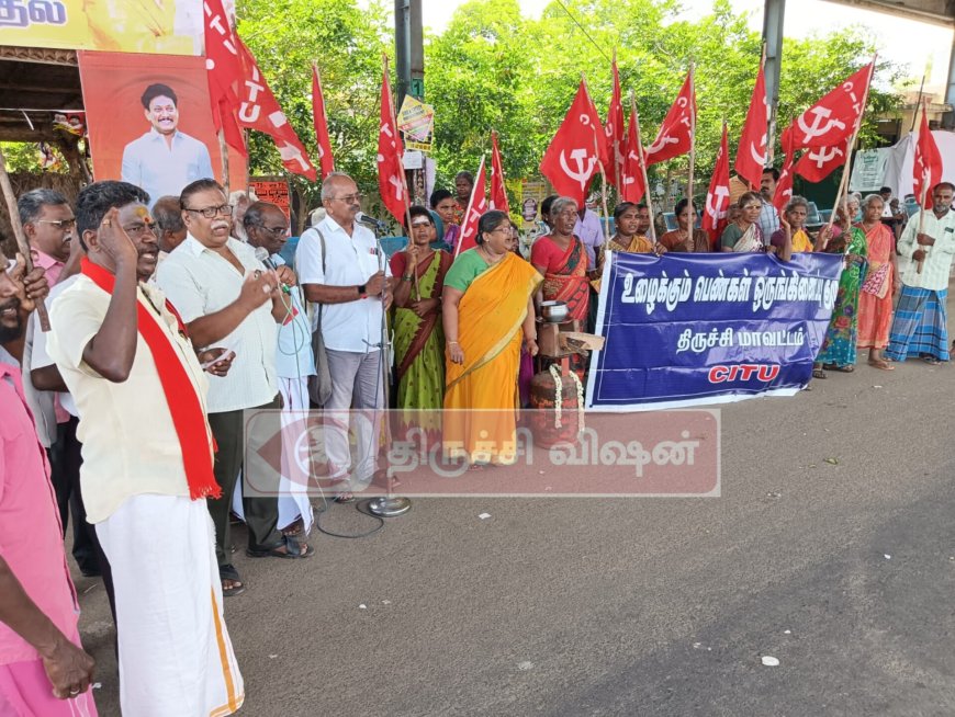 இந்த நிலையில் கேஸ் சிலிண்டர் விலை உயர்வை கண்டித்து திருச்சி மாவட்டம் திருவெறும்பூர் பேருந்து நிலையம் அருகே சி.ஐ.டி.யூ உழைக்கும் பெண்கள் ஒருங்கிணைப்பு குழு சார்பில் கண்டன ஆர்ப்பாட்டம் நடைபெற்றது.