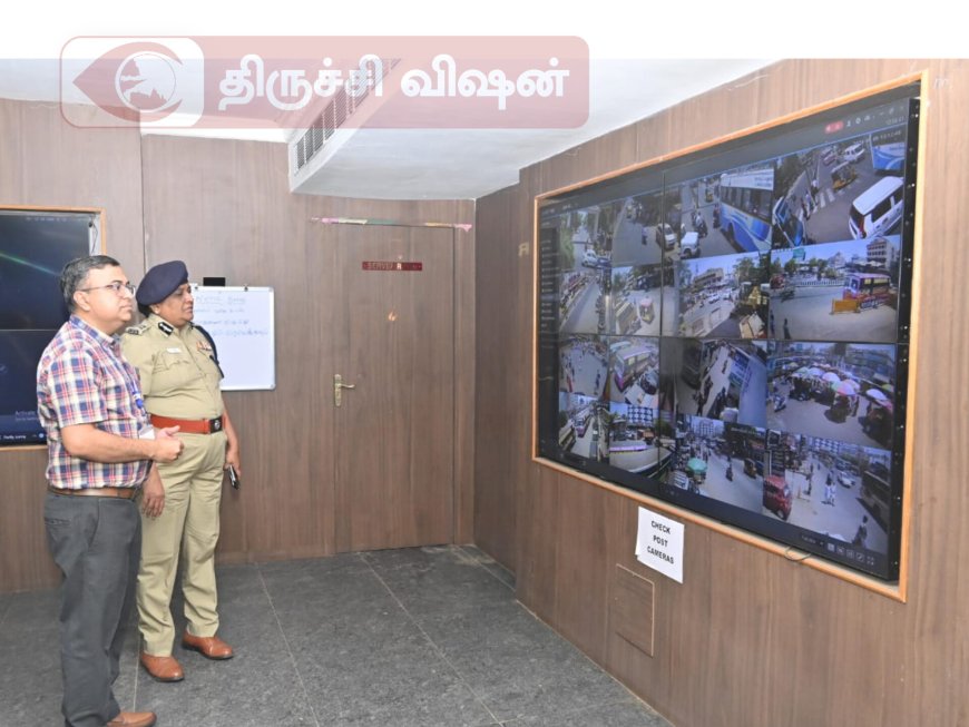 பாராளுமன்ற தேர்தல் – 2024 திருச்சி மாநகர காவல் ஆணையர் மற்றும் தேர்தல் செலவின பார்வையாளர் திருச்சியில்(Modern Control Room) உள்ள சோதனைசாவடி CCTV கேமராக்களை ஆய்வு செய்தார்கள்.