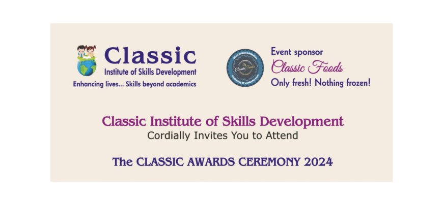 கிளாசிக் இன்ஸ்டிடியூட் ஆஃப் ஸ்கில்ஸ் டெவலப்மெண்ட் சார்பில் கிளாசிக் விருதுகள் விழா 2024 திருச்சியில் நாளை மறுநாள் (29.11.2024) அன்று தென்னூர் பகுதியில் உள்ள Classic Institute of Skills Development நிறுவனத்தில் நடைபெற உள்ளது.