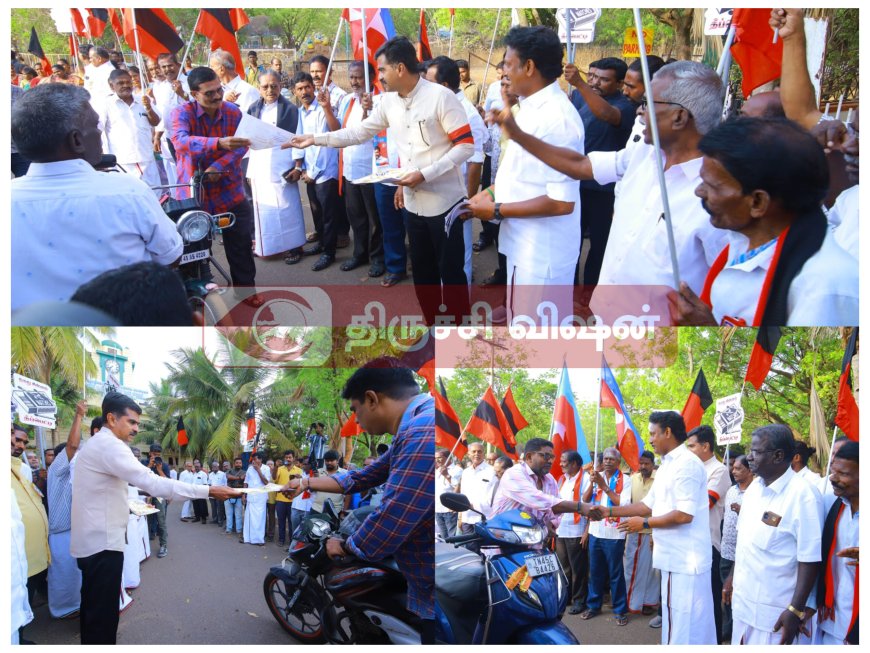திமுக திருச்சி தெற்கு மாவட்டச் செயலாளரும், தமிழக பள்ளிக்கல்வித்துறை அமைச்சருமான அன்பில் மகேஷ் பொய்யாமொழி தலைமையில், இன்று (12.04.2024) காலை பொன்மலை மத்திய தொழிற்சாலையின் முகப்பில் உள்ள ஆர்மெரிகேட் அருகில், பொன்மலை பணியாளர்களிடம் துண்டறிக்கை வழங்கி தீப்பெட்டி சின்னத்திற்கு வாக்கு கேட்டு ஆதரவு திரட்டினர்.