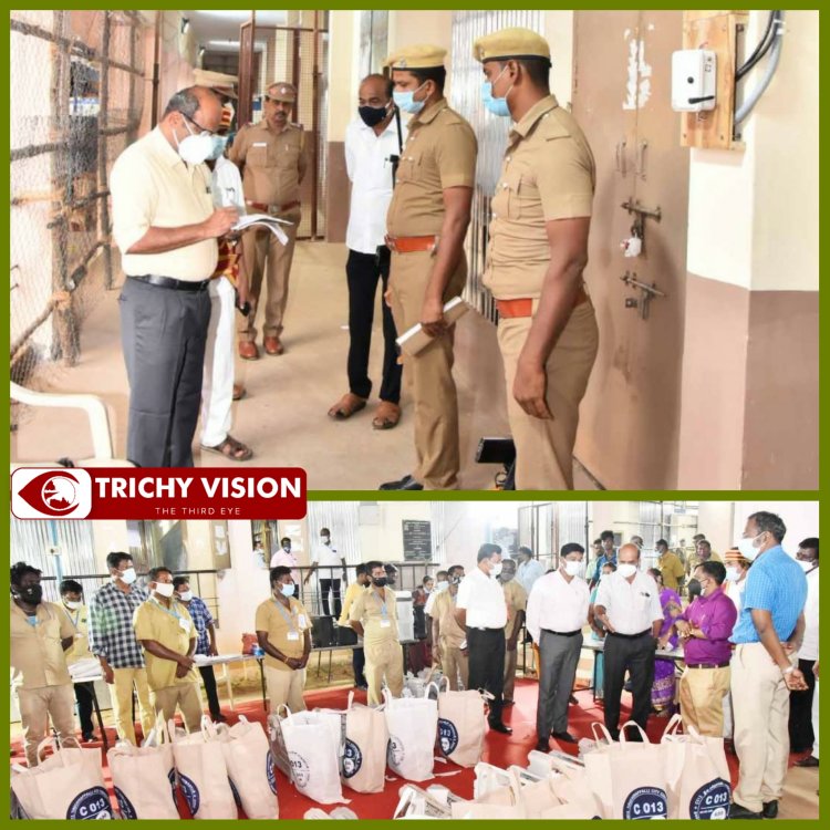 திருச்சி மாநகராட்சியில் வாக்குப்பதிவு இயந்திரங்களில் பதிவான வாக்குகள் ஜமால் முகமது கல்லூரியில் பாதுகாப்பாக வைக்கப்பட்டுள்ளது. காவல்துறையினர் 24 மணி நேரமும் பாதுகாப்பு பணியில் உள்ளனர். திருச்சி மாவட்ட ஆட்சியர் சிவராசு நேரில் ஆய்வு செய்து வாக்கு எண்ணிக்கை நடைபெற இருக்கும் பகுதிகளை நேரில் பார்வையிட்டு தேர்தல் அலுவலர்களுடன் ஆலோசனையில் ஈடுபட்டார். மாநகராட்சி ஆணையர் முஜிபுர் ரகுமான், மாவட்ட வருவாய் அலுவலர் பழனிகுமார் ஆகியோர் உடனிந்தனர்.