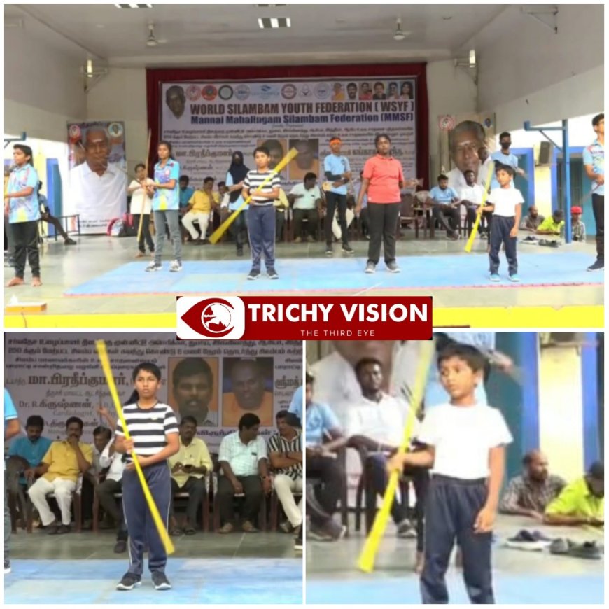 சர்வதேச உழைப்பாளர் தினத்தை முன்னிட்டு திருச்சி தில்லைநகர் கி.ஆ.பெ.விசுவநாதம் மேல்நிலைப்பள்ளியில் தொடர்ந்து 8 மணி நேரம் சிலம்பம் சுற்றி ஆங்கிலோ இந்தியன் பெண்கள் மேல்நிலைப்பள்ளி மாணவி கலைஇளமணி மோ.பி.சுகித்தா புதிய உலக சாதனை படைத்தார். அவருடன் திருச்சி மாவட்ட ஆட்சித்தலைவர் மா.பிரதீப்குமாரின் மகன்கள் மித்ரன் மற்றும் பிரஜன் ஆகியோர் சிலம்பம் சுற்றி சாதனை படைத்தனர்.