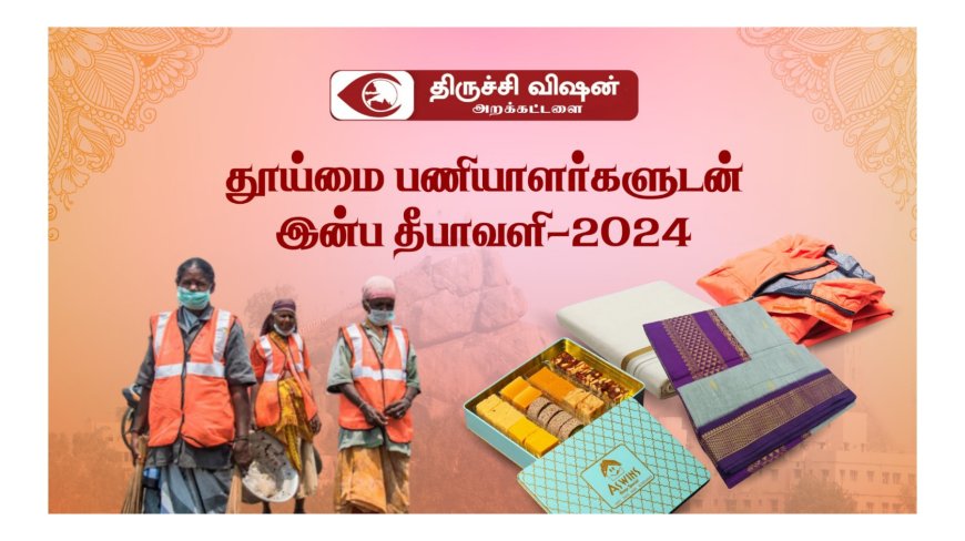 திருச்சி விஷன் அறக்கட்டளையுடன் அஸ்வின் ஸ்வீட்ஸ், அனுஜ் டைல்ஸ் தொடர்ந்து தூய்மை பணியாளர்களுக்கான கொண்டாட்டத்தில் இணைந்துள்ளது. இது போன்று உங்களுடைய பங்களிப்பு தூய்மை பணியாளர்களுக்கான தீபாவளி கொண்டாட்டத்தில் இணைந்து ஆதரவை தர திருச்சி விஷன் அறக்கட்டளை அன்போடு அழைக்கின்றது.