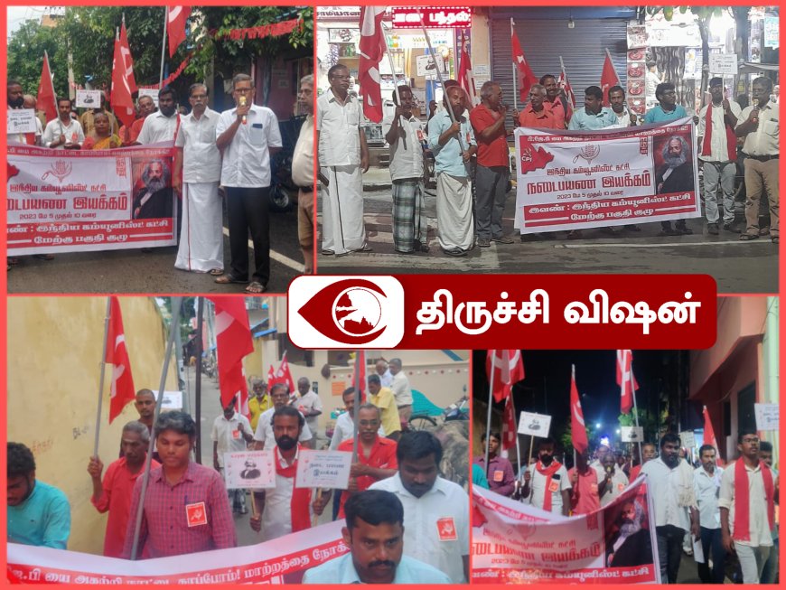 பாஜக அரசை அகற்றுவோம் நாட்டை பாதுகாப்போம் என்ற முழக்கத்துடன் நாடு தழுவிய நடை பயணத்தையொட்டி இந்திய கம்யூனிஸ்ட் கட்சியின் திருச்சி மேற்கு பகுதி குழுவின் சார்பில் இரண்டாவது நாள் நடைபயணம் இந்தியக் கம்யூன்ஸ்ட் கட்சியின் மாவட்டக் குழு உறுப்பினர் க.இப்ராகிம் தலைமையில் திருச்சிராப்பள்ளி மாநகராட்சி 8வது வார்டு பாண்டமங்கலத்தில் துவங்கி நடைபெற்றது நடைபெற்றது.