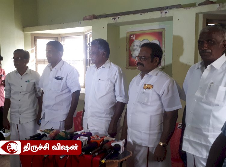 திருச்சி மிளகு பாறை பகுதியில் கம்யூனிஸ்ட் கட்சியின் மாநில செயலாளர் முத்தரசன் செய்தியாளர்களை சந்தித்தார்.