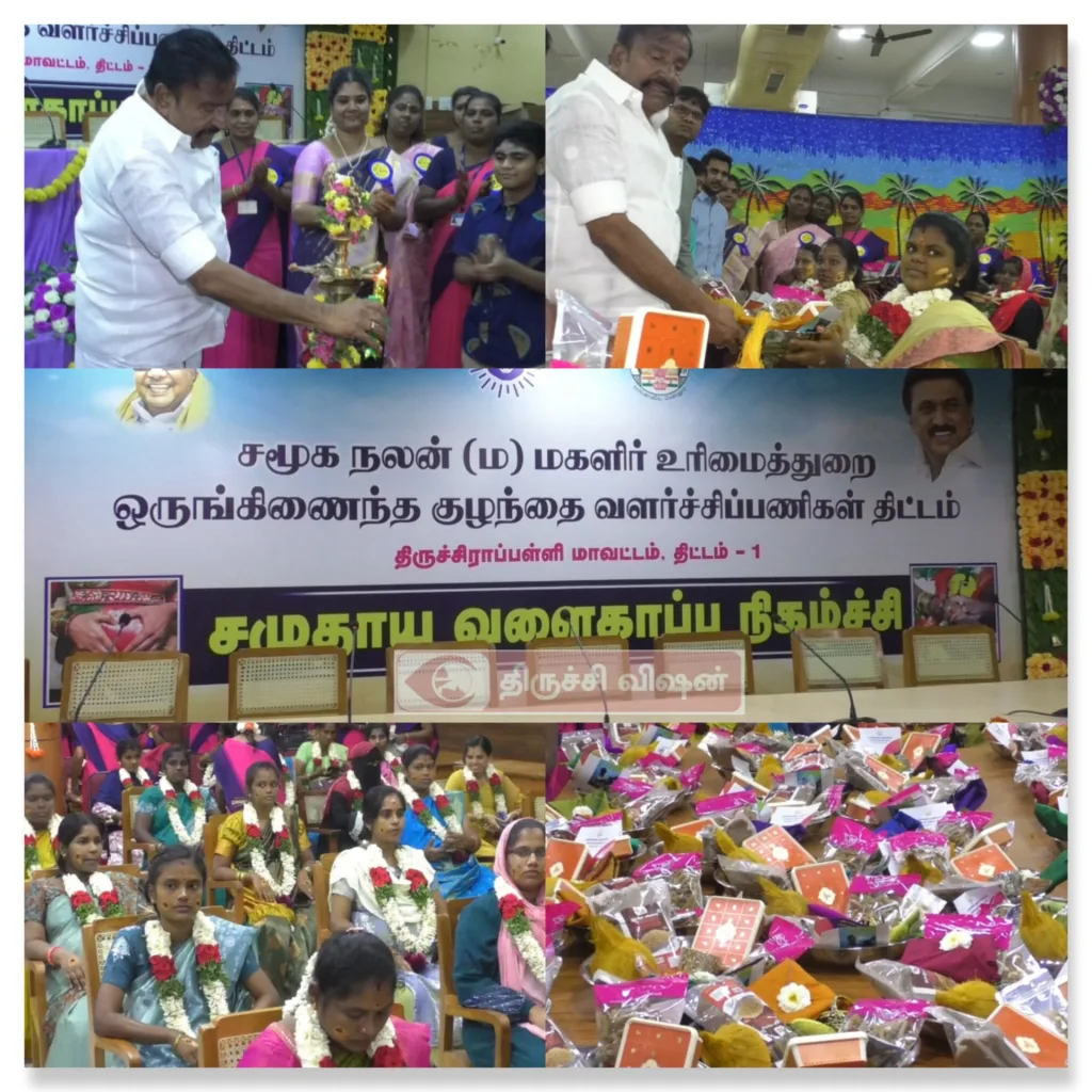இதன் ஒரு பகுதியாக இன்று திருச்சி மாவட்ட ஆட்சியர் அலுவலகத்தில் மாவட்ட ஆட்சியர் சரவணன் தலைமையில் சமுதாய வளைகாப்பு விழா நடைபெற்றது.