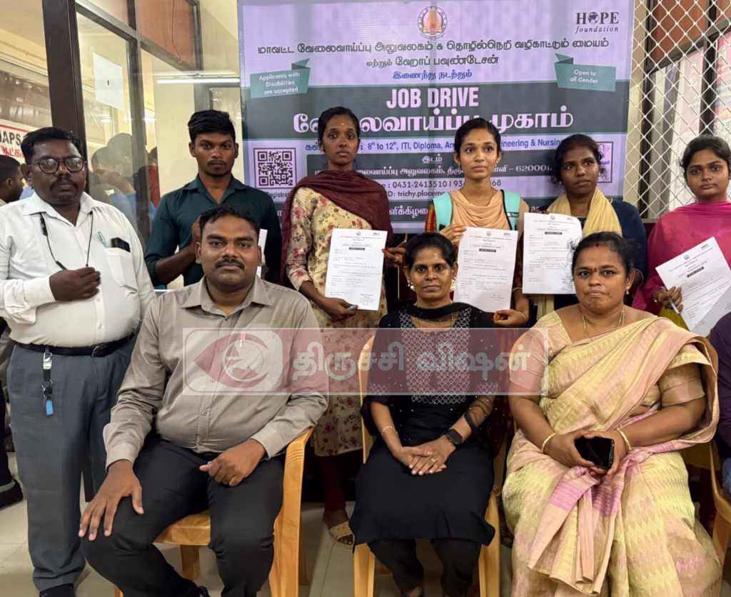 திருச்சி மாவட்ட வேலைவாய்ப்பு அலுவலகம் & தொழில் நெறி வழிகாட்டும் மையம் மற்றும் ஹோப் பவுண்டேன் இணைந்து 25.07.2025 அன்று திருச்சி மாவட்ட வேலைவாய்ப்பு அலுவலக வளாகத்தில் வேலைவாய்ப்பு முகாமை வெற்றிகரமாக நடத்தியது.