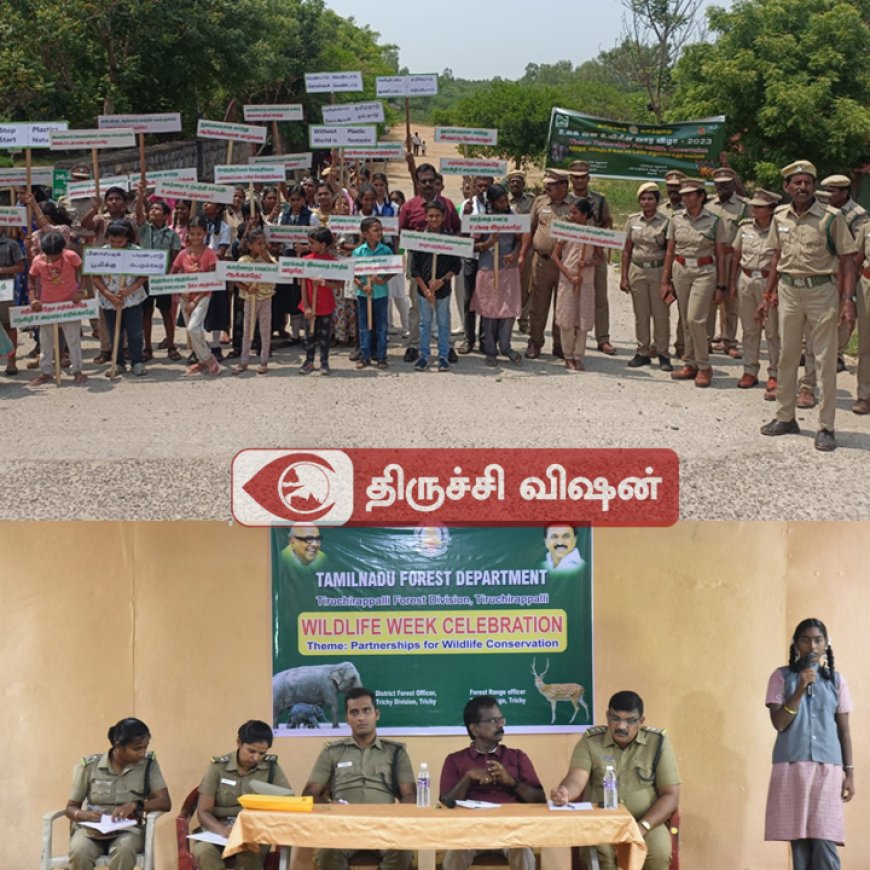 திருச்சி வன கோட்டத்திற்கு உட்பட்ட வண்ணத்துப்பூச்சி பூங்காவில் தலைமை வனப் பாதுகாவலர் சதீஷ் உத்தரவின் பெயரில் மாவட்ட வன அலுவலர் திருச்சி கிரண் அறிவுரையின்படி உதவி வன பாதுகாவலர் சம்பத்குமார் தலைமையில் உலக வன உயிரின வார விழாவினை முன்னிட்டு வண்ணத்துப்பூச்சி பூங்காவில் அரசு மற்றும் தனியார் பள்ளிகளின் 1 முதல் 12 வகுப்பு மாணவ, மாணவிகளுக்கான ஓவிய போட்டி கட்டுரை போட்டி, வினாடி – வினா ஆகியவை நடத்தப்பட்டது.