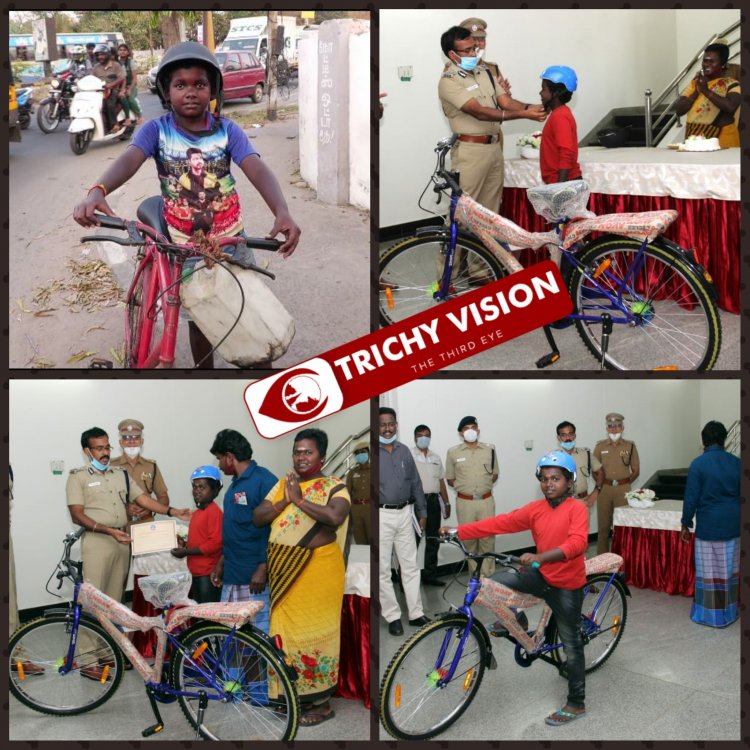 அது மட்டுமின்றி அவருக்கு புதிதாக சைக்கிள் மற்றும் ஹெல்மெட், சிறப்பு சான்றிதழையும் வழங்கி அவனை ஊக்கப்படுத்தியுள்ளார். இதுகுறித்து அவனது தாயார் கலையரசி நெகிழ்ச்சியோடு நம்மோடு பகிர்ந்து கொண்ட சில வரிகள்,