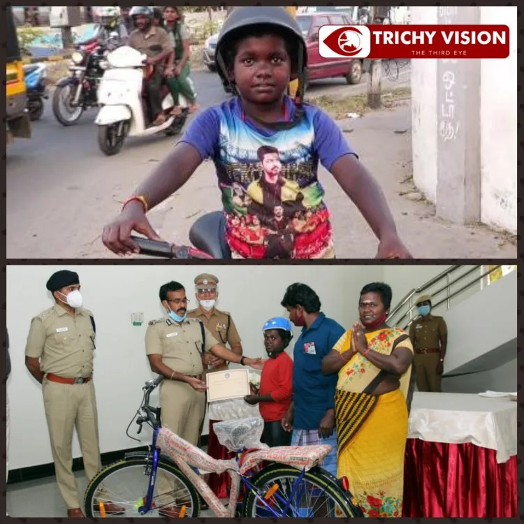 திருச்சி மாநகர காவல் அலுவலகத்தில் நடந்த இந்த நிகழ்ச்சி எல்லோர் மனதிலும் ஒரு நெகிழ்ச்சியை ஏற்படுத்தியுள்ளது. 12 வயது சிறுவன் ஏற்படுத்திய விழிப்புணர்வு எல்லோரும் கடைபிடிக்க வேண்டிய ஒன்று.இவர் ஹெல்மெட் அணிந்து வருவதை வீடியோவாக அ.க.ரோவிந்த்