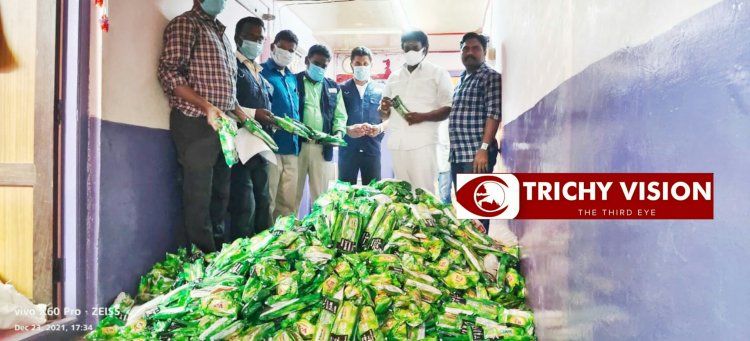 பொதுமக்களிடம் இருந்து வந்த புகாரை அடுத்து திருச்சி மணிமண்டபம் சாலையில் உள்ள ஒரு வீட்டின் மாடியில் சுமார் 108 கிலோ தமிழக அரசால் தடைசெய்யப்பட்ட பான்மசாலா குட்கா போன்ற புகையிலை பொருட்கள் மாவட்ட நியமன அலுவலர் டாக்டர்.ரமேஷ்பாபு தலைமையில் உணவு பாதுகாப்பு அலுவலர்கள் கொண்ட குழு