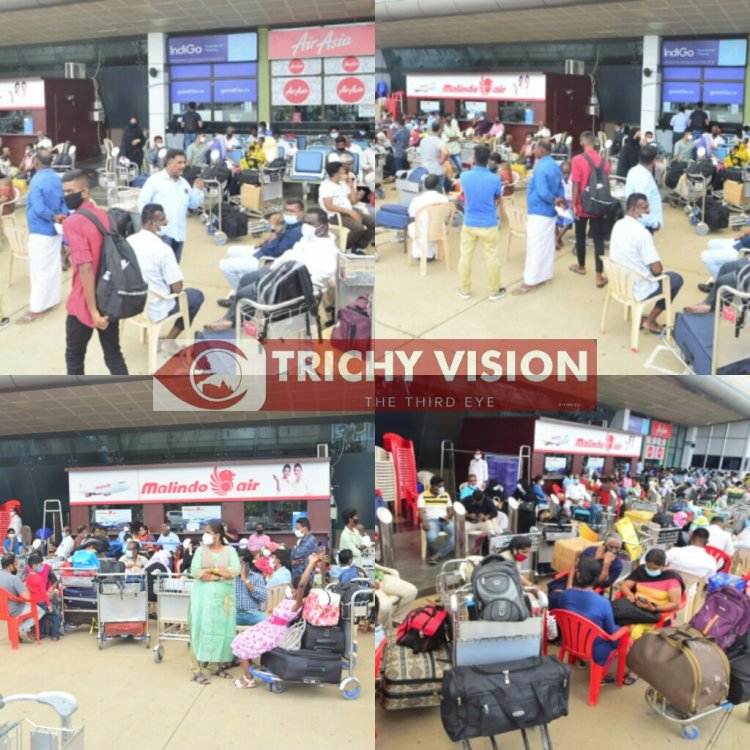 இதன் ஒருபகுதியாக திருச்சி விமான நிலையத்திலிருந்து இன்று காலை துபாய் செல்வதற்காக 150க்கும் மேற்பட்டோர் பயணிகள் விமான நிலையம் வந்தனர். இதனையடுத்து காலை 9:15 மணிக்கு துபாய் செல்ல வேண்டிய விமானம் வரவில்லை. மேலும் விமான நிலையத்தில் பயணிகளுக்கு கொரோனா பரிசோதனையும் செய்யப்படவில்லை.