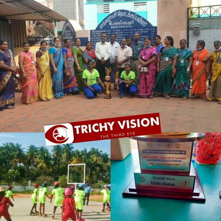 தேனி மாவட்டம், கம்பம் R.R இன்டர்நேஷனல் பள்ளியில் கடந்த 12.12.21ம் தேதி நடைபெற்ற மாநில அளவிலான ஏரோ – ஸ்கேடோ – பால் (Aero-ska to – Ball) போட்டியில் திருச்சி அணி வெற்றி பெற்றது.