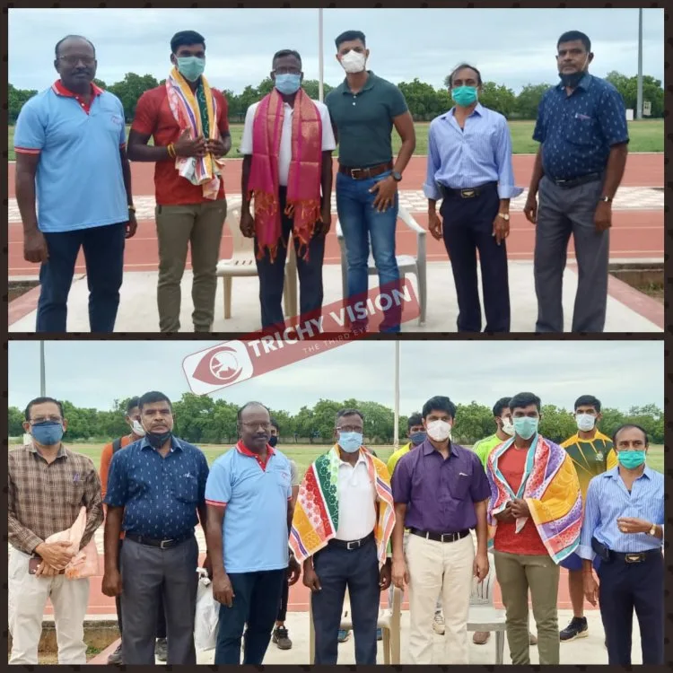 தமிழ்நாட்டிலிருந்து ஜப்பான் டோக்கியோ 2020 ஒலிம்பிக் போட்டிக்கு தேர்வாகியுள்ள திருச்சி மற்றும் தமிழ்நாடு தடகள விளையாட்டு வீராங்கனைகளை பதக்கங்களுடன் தாயகம் திரும்ப வாழ்த்தியும், அவர்களுக்கு பயிற்சி கொடுத்த பயிற்சியாளர்களுக்கு பாராட்டு விழா நடந்தது.
