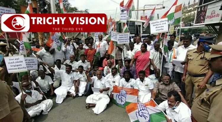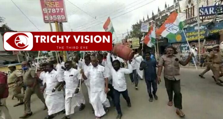 அந்த விவசாய சட்டங்களை திரும்பப் பெறக் கோரியும், ரயில்வே துறை, எல்ஐசி, விமான நிலையங்கள், அரசு வங்கிகளை தனியார் மயமாக்குவதை கண்டித்தும், பெட்ரோல், டீசல் மற்றும் கேஸ் விலை உயர்வைக் கட்டுப்படுத்தக் கோரியும், படித்த இளைஞர்களுக்கு வேலையை ஏற்படுத்த தவறினர் .மத்திய அரசை கண்டித்து திருச்சி மாநகர் மாவட்ட காங்கிரஸ் கட்சியினர் மாவட்ட தலைவர் ஜவஹர் தலைமையில் கேஸ் சிலிண்டர் உடன் திருச்சி அருணாச்சலம் மன்றத்தில் இருந்து பேரணியாக நடந்து சென்று மெயின்கார்டு கேட் முன்பு திடீர் சாலை மறியல் போராட்டத்தில் ஈடுபட்டனர்.