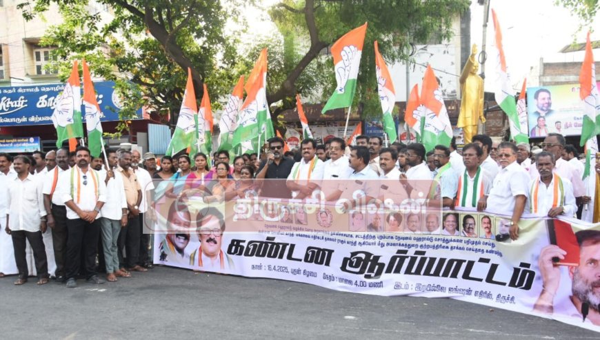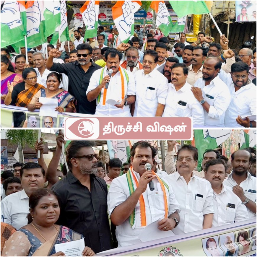 செய்ததை கண்டித்து திருச்சி மாநகர் மாவட்ட தலைவர் கவுன்சிலர் எல். ரெக்ஸ் தலைமையில், தெற்கு மாவட்ட தலைவர் கவுன்சிலர் கோவிந்தராஜன் முன்னிலையில் கண்டன ஆர்ப்பாட்டம் நடைபெற்றது. அகில இந்திய செயலாளர் கிறிஸ்டோபர் திலக், மாவட்ட பொருளாளர் முரளி, ஜங்ஷன் கோட்ட தலைவர் பிரியங்கா படேல் ஆகியுயோர் கண்டன உரையாற்றினார்.