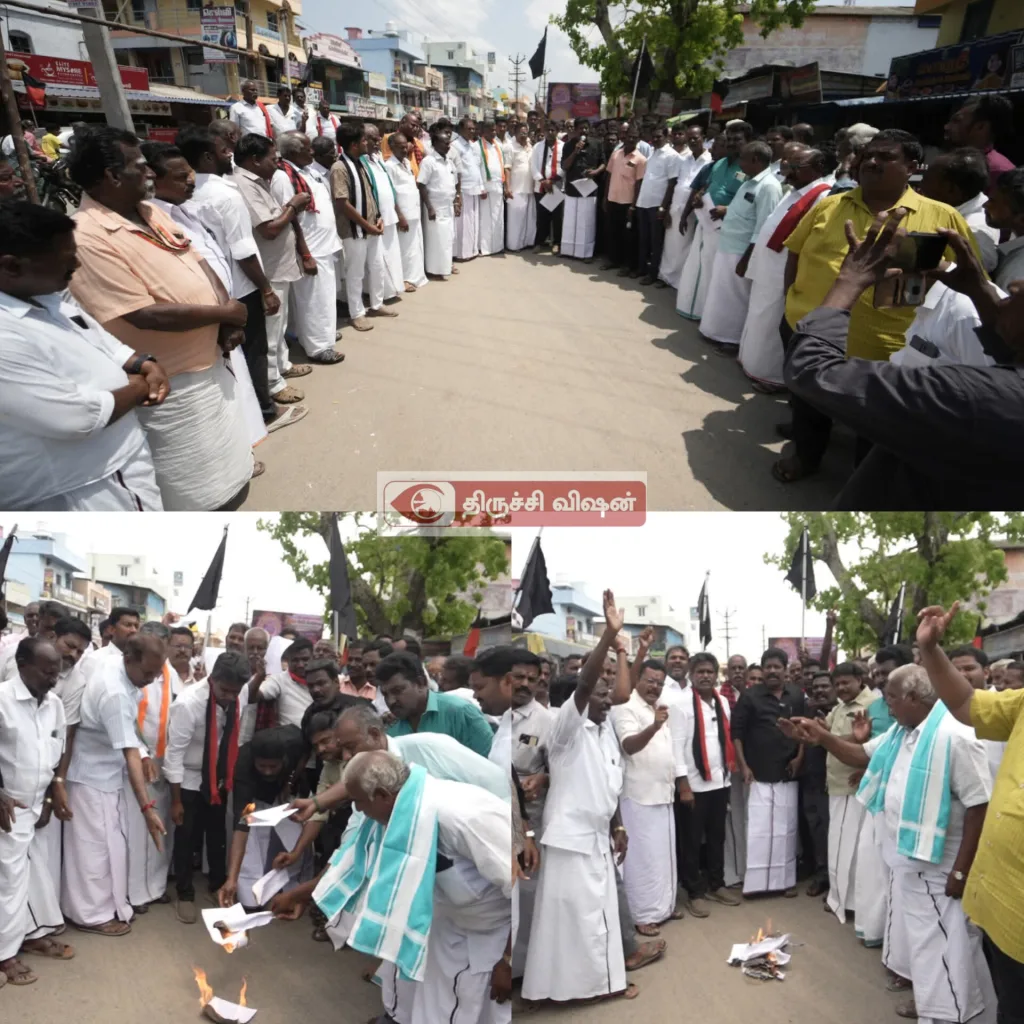 தொகுதி மறுவரையறை எதிர்ப்பு: புள்ளம்பாடியில் நகல் எரிப்புப் போராட்டம்!