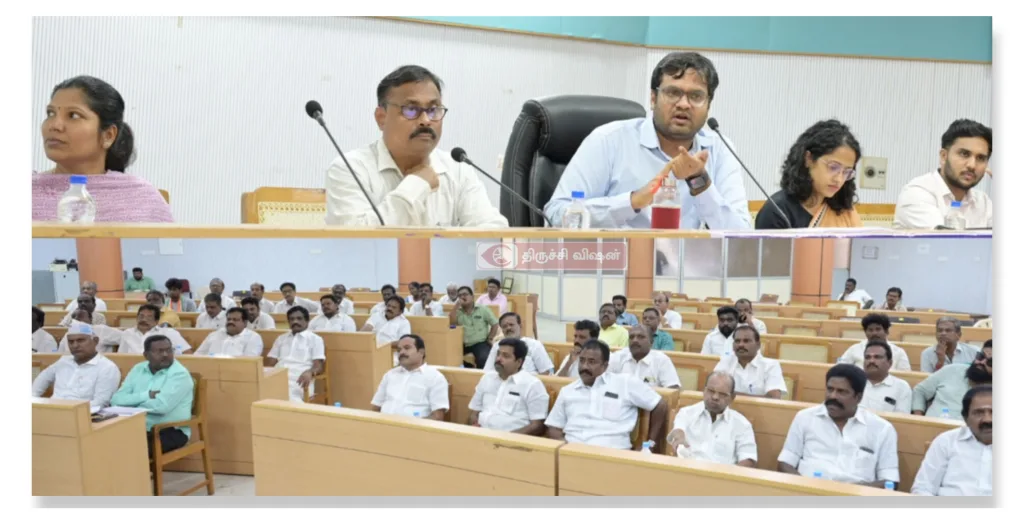 திருச்சிராப்பள்ளி மாவட்ட ஆட்சியர் அலுவலகக் கூட்டரங்கில் இந்திய தேர்தல் ஆணையம் அறிவித்துள்ள வாக்காளர் பட்டியல் சிறப்பு தீவிர திருத்தம் 2026 தொடர்பாக அனைத்து அங்கீகரிக்கப்பட்ட அரசியல் கட்சி பிரமுகர்களுடனான ஆலோசனைக் கூட்டம் மாவட்ட தேர்தல் அலுவலர்/மாவட்ட ஆட்சித்தலைவர் வே.சரவணன், அவர்கள் தலைமையில் இன்று (29.10.2025) நடைபெற்றது.
