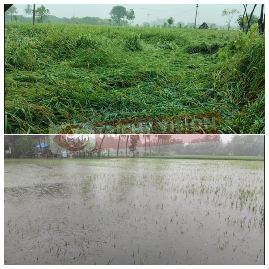 இந்நிலையில் நீர்நிலைகள், வடிகால் வாய்க்கால்கள் ஆக்கிரமிப்பு காரணமாக நீர் வடியாமல் வயல்களில் புகுந்து மூழ்கியுள்ளது. மேலும் விளைந்த நெற்பயிர்கள் மழையின் காரணமாக சாய்ந்து உள்ளது.