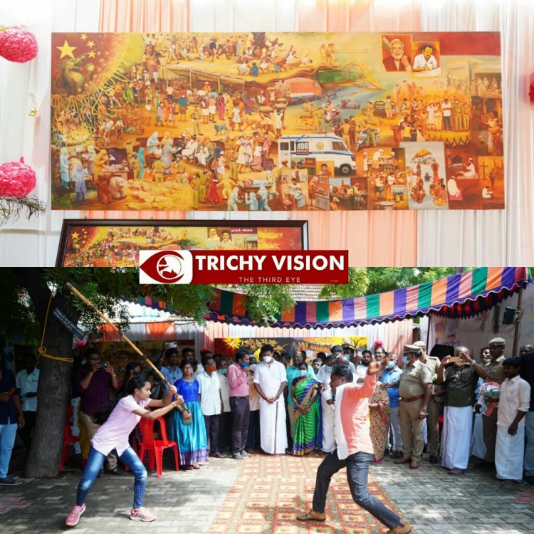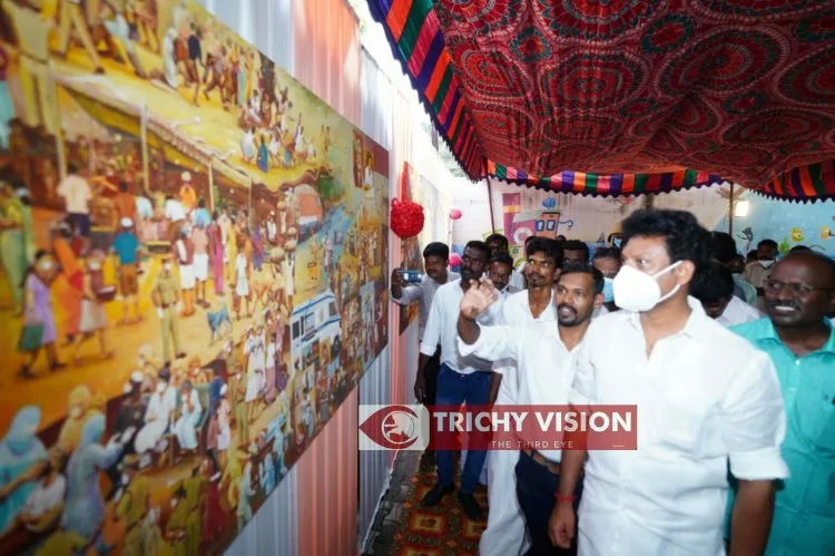 திருச்சி திருவெறும்பூர் அருகே உள்ள அரியமங்கலத்தில் தனியார் பள்ளியில் சோழன் கலை மற்றும் மக்கள் சக்தி இயக்கம் சார்பில் நடந்த ஞஓவியர் சித்தன் சிவாவின் கொரோனா வைரஸ் நோய் விழிப்புணர்வு ஓவியக் கண்காட்சியை தமிழக பள்ளிக்கல்வித்துறை அமைச்சர் அன்பில் மகேஷ் பொய்யாமொழி திறந்துவைத்து பார்வையிட்டார். பின்னர் செய்தியாளர்களை சந்தித்த அன்பில் மகேஷ் பொய்யாமொழி… கொரோனா நோய்தொற்று காலத்தில் எப்படி எல்லாம் இருந்தது என்பதை ஓவியர் சித்தன் சிவா அழகாக ஓவியத்திறமை மூலமாக திறமையை வெளிக்கொண்டு வந்துள்ளார்.
