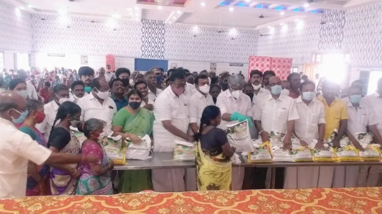 இப்பகுதி ஆயிரத்திற்கும் மேற்பட்ட குடும்பங்களுக்கு 5 கிலோ அரிசி, ஒரு வாரத்திற்குத் தேவையான காய்கறிகள் அடங்கிய நிவாரண தொகுப்பினை திருச்சி மாநகர் மாவட்ட செயலாளரும், சுற்றுலாத்துறை அமைச்சருமான வெல்லமண்டி நடராஜன் வழங்கினார்.
