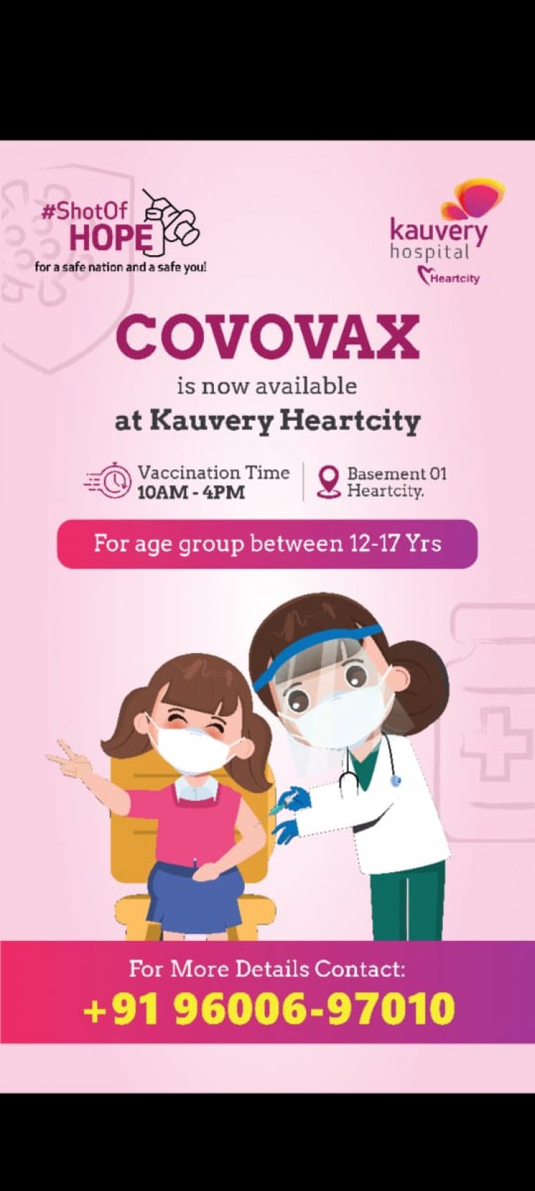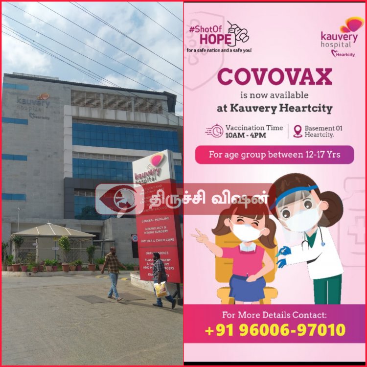 திருச்சி கண்டோன்மெண்ட் பகுதியில் செயல்பட்டு வரும் காவேரி ஹார்ட் சிட்டி மருத்துவமனையில் குழந்தைகளுக்கான கொராணா தடுப்பூசி போடப்பட்டு வருகிறது.12வயது முதல் 17 வயதிற்குட்பட்ட குழந்தைகளுக்கு காலை 10 மணி முதல் மாலை 4 மணி வரை போடப்படுகிறது.ஒரு  கோவாக்ஸ் தடுப்பூசியின் விலை 386 ரூபாய் மட்டுமே!!