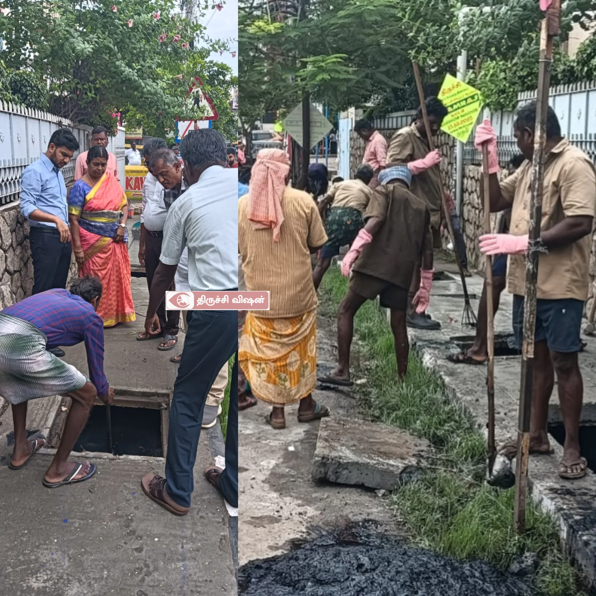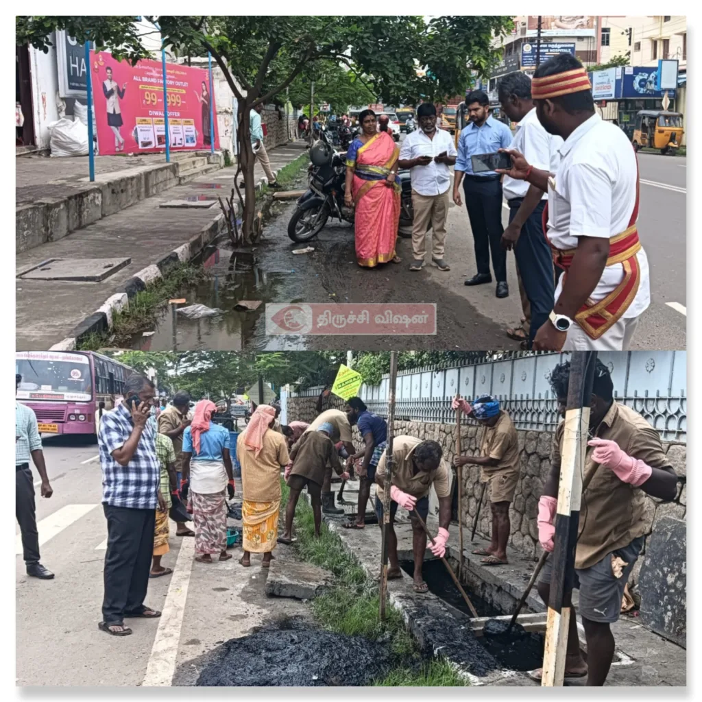 தில்லைநகர் மழைநீர் வடிகால் பணிகளை நேரில் ஆய்வு செய்த மாநகராட்சி ஆணையர்