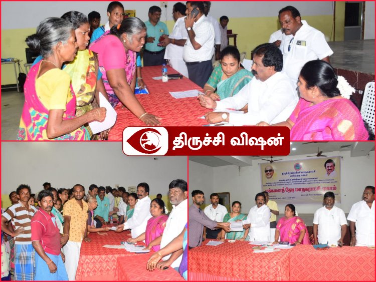 தமிழக முதலமைச்சர் உத்தரவின்படி திருச்சிராப்பள்ளி மாநகராட்சி மண்டலம் எண் – 2க்குட்பட்ட 13 வார்டு பகுதிகளை சேர்ந்த மாநகராட்சி தொடர்பான மக்களின் கோரிக்கை மனுக்களை பெற்று தீர்வு காணும் வகையில்பாலக்கரை மீனாட்சி திருமண மண்டபத்தில் மாநகராட்சி மேயர் மு.அன்பழகன் பயனாளிகளுக்கு கட்டிட அனுமதி, சொத்து வரி பெயர் உள்ளிட்ட ஆணைகளை வழங்கினார்.
